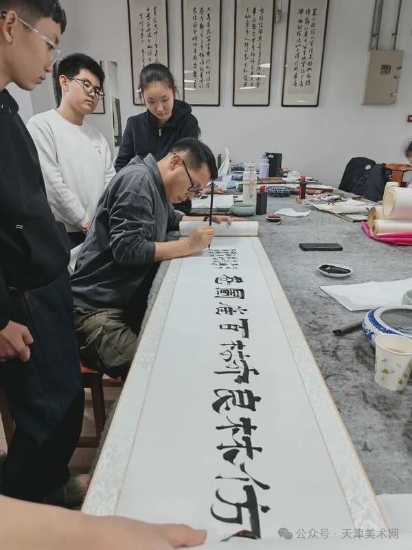 随着他的手腕轻轻转动,笔锋或轻或重,墨色或浓或淡——天津市美术家协会副主席、天津美术学院魏云飞教授正在为书院小学员们进行的公益书画指导。