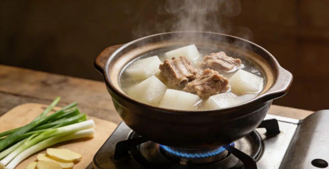 白萝卜炖排骨中医记载白萝卜性凉味甘,能理气消食、生津止渴,化解秋冬进补时肉食积滞的问题,避免出现腹胀、消化不良等情况。排骨性温,能滋阴润燥、补充精血,二者同炖,寒热平衡,不燥不寒,适合各类人群食用。现代营养学认为,白萝卜富含芥子油和膳食纤维,芥子油能促进胃液分泌,增进食欲,膳食纤维可加快肠道蠕动,帮助身体排出代谢废物。排骨含有优质蛋白质和钙质,优质蛋白质是构成身体组织的基础,能增强身体抵抗力,应对冬日常见的感冒问题,钙质则能维护骨骼健康,预防中老年人群的骨质疏松。炖煮时少盐少调料,喝原汁原味的汤,吃软烂的肉和萝卜,滋养效果更佳。