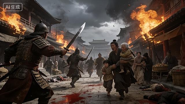 八王之乱中,诸王混战的洛阳街头,士兵厮杀,百姓逃亡,尸横遍野。