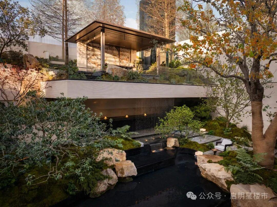 南庭院打造的则是叠水景观,多重水景相映成趣,静水廊桥,颇有江南水乡的清新雅致。