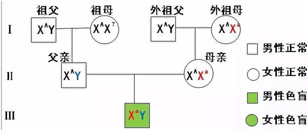 女儿则可能会把从父亲传来的色盲基因,继续传给自己的儿子,也被称为“交叉遗传”。