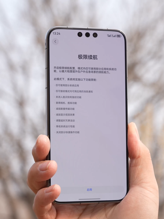 对于户外来说,电量焦虑几乎和迷路一样致命。以往只要进山,无论手机多强,沉重的充电宝都是必备标配,甚至要带好几块,即便如此也需精打细算地用。而华为Mate 80 Pro Max开启极限续航模式后,续航最长可达14天,对于电量的焦虑瞬间就没了。