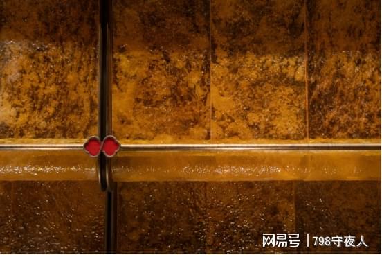 右侧选用取材自巴西矿脉的香格里拉奢石,设计灵感源于《千里江山图》。据悉,为实现巨幅墙面纹路如山水画卷般自然流畅,选材耗损率超高。最终由100余块石材精工拼合,既暗合“百石来聚”的吉祥寓意,也在天然肌理中隐现东方意境。