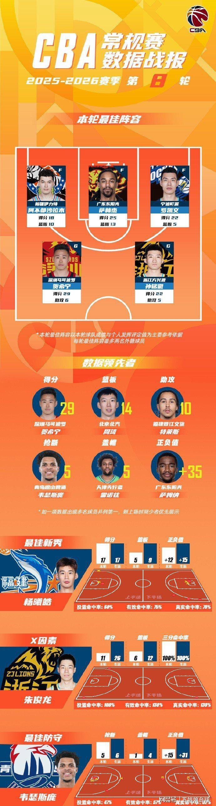截至目前,CBA常规赛前八轮的比赛已经全部结束,积分榜排名也已经正式出炉,前八轮的某些比赛结果,可能让众多球迷大跌眼镜。第九轮比赛31日正式开打,在这里跟大家分享两则最新消息,第一则,北京首钢男篮球员曾凡博,已经正式完成注册。第二则,CBA第八轮比赛最佳阵容出炉,深圳男篮贺希宁本赛季第三次入选。