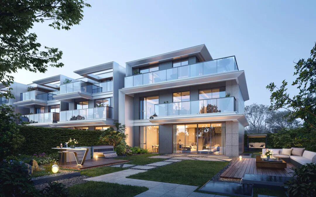 南北双花园、阳台、露台形成了五重垂直院落,将天地情怀和多代共融的功能复合,创造出板块前所未有的墅居生活形态。