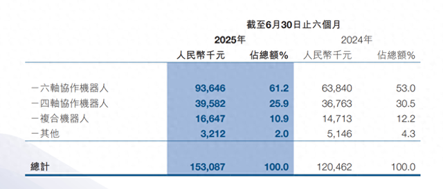 按产品来看,越疆2025年上半年六轴协作机器人产品收入9365万元,同比增长46.7%,总收入占比达61.2%。公司表示,大幅增长一方面是因为公司产品类型丰富,重负载六轴协作机器人产品获得增长,另一方面是因汽车制造、3C电子、医疗和商业零售领域的上下料、装配和检测等核心应用场景的持续拓展和深入,带动六轴协作机器人产品销量大幅增加,推动境内收入增长56.7%。