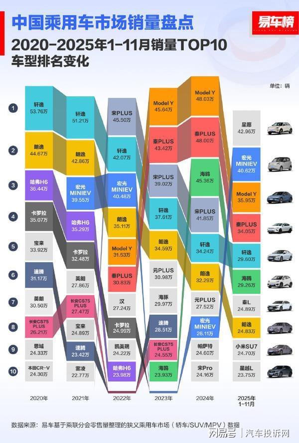尤为值得骄傲的是,在这场变革中,中国自主品牌牢牢掌握了主动权。不仅在新能源总销量榜单中包揽前列,更在具体车型排行榜上占据主导。数据显示,今年前11个月车型销量前三名——星愿、 宏光MINIEV ( 参数 丨 图片 )和特斯拉 Model Y 中,自主品牌占据两席,并且多款热门车型均出自本土企业。这意味着,借助电动化与智能化的浪潮,自主品牌不仅实现了对主流市场的占领,更在高价值产品领域建立了强大的竞争力,彻底扭转了燃油车时代的市场格局。例如,零跑汽车提前45天完成全年50万辆的宏伟目标,并规划明年冲击百万辆规模,正是这种自信与实力的体现。
