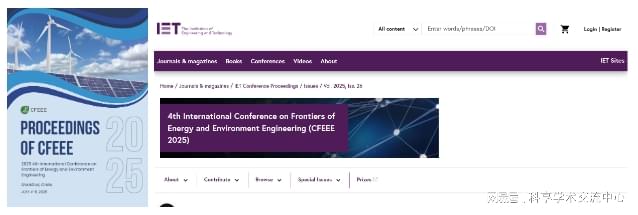 CFEEE2025:All accepted papers of 2025 4thInternational Conference on Frontiers of Energy and Environment Engineering(CFEEE 2025) has been published byIET Conference Proceedings.