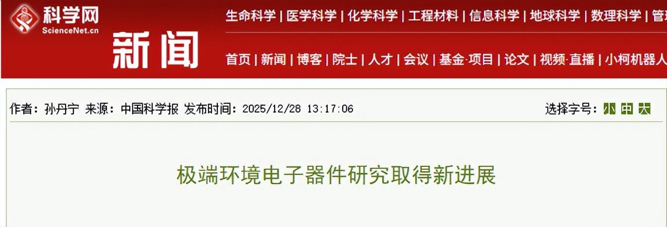 中国科学报 2025/12/28 极端环境电子器件研究取得新进展