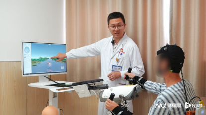 冬日午后,在广东三九脑科医院康复治疗科,40岁的脑梗偏瘫患者王先生(化姓)正戴着形似泳帽的电极帽,专注地看着屏幕上的游泳视频。他努力想象着自己划水的动作,就在此刻,他那原本无力活动的左手,竟在功率单车的带动下,开始跟随“意念”同步划动起来。这一幕看似科幻的场景,如今已成为该院新建成的脑机接口临床研究病房的日常诊疗画面。