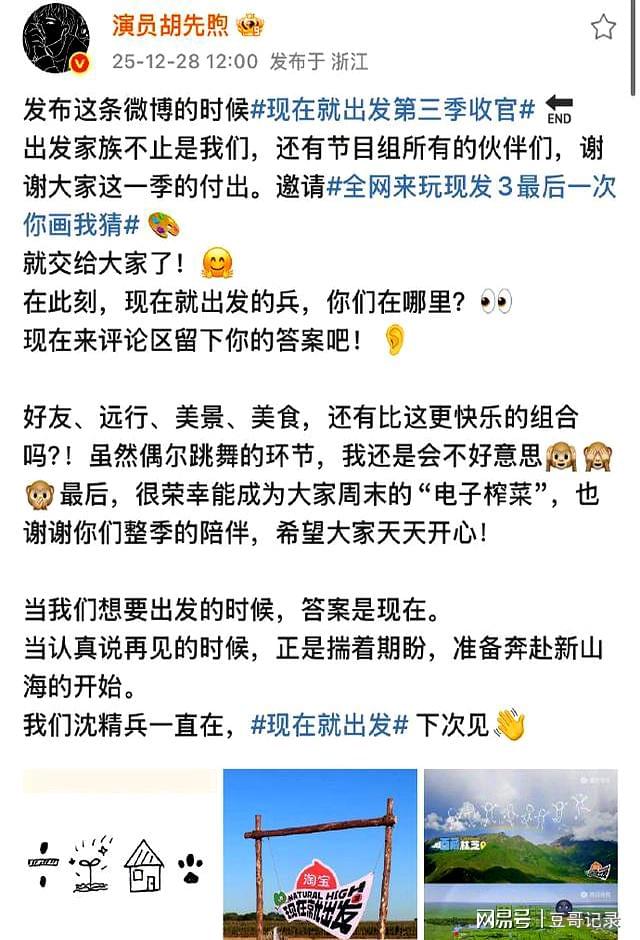胡先煦的手绘告别在综艺节目《现在就出发3》中成为了一个令人难忘的瞬间。