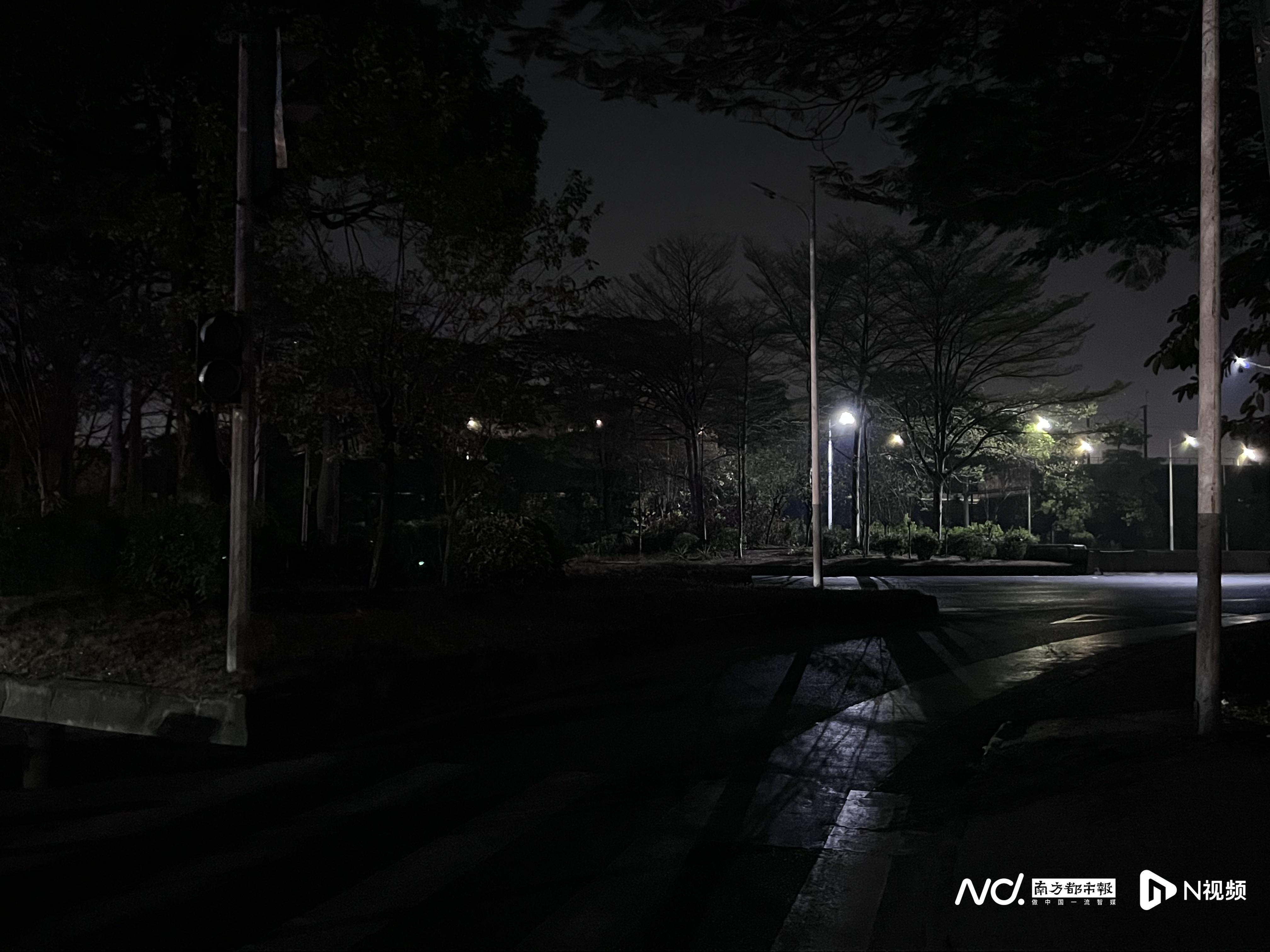 此外,碧桂路辅路往新发路方向部分路段近200米,只有一盏路灯仍在照明,道路照明主要依靠周边碧桂路路灯、红绿灯以及来往车辆等。部分路段在没有车辆经过的时候,显得十分漆黑。