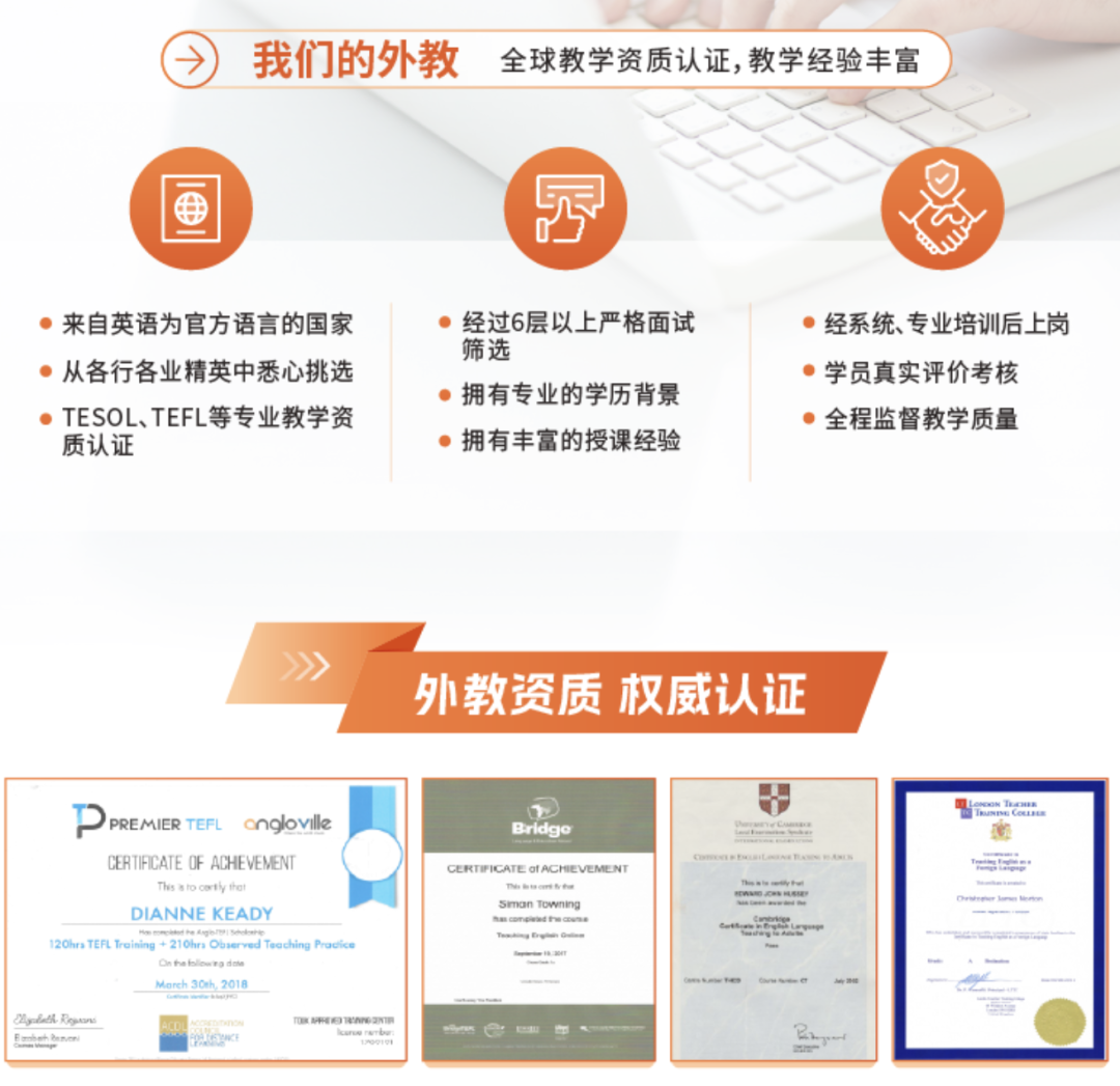 专业护航:历经6层严苛筛选,全员持有TESOL/TEFL国际教学资格证。