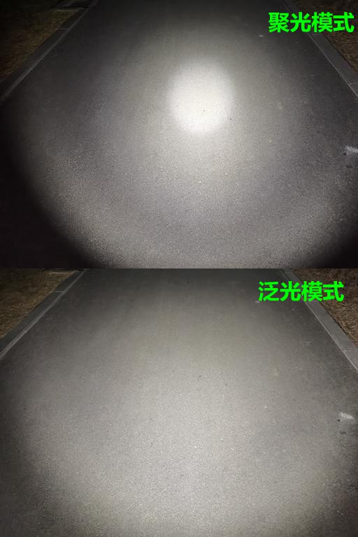 聚光/泛光,双模式进行照射路面的实际对比,两种模式下展现的效果截然不同,不同的模式也适应不同的环境,整体来说对于户外使用拥有更多的选择。