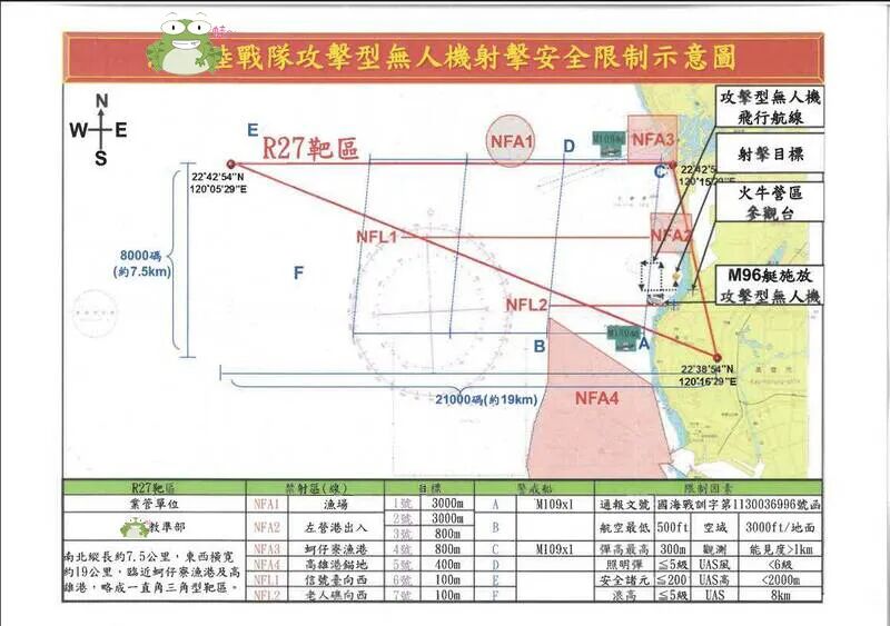 12月24日,伪“海军陆战队”在左营外海进行了其自行研制的“劲蜂一型”自杀式无人机的海上实弹射击。此次实弹射击时,“劲蜂一型”搭载在伪“海军陆战队”装备的M96快艇上进行试射,实战意味相当明显。12月23日, 伪“海军陆战队”发表通告称,将于12月24日下午在左营港区外海进行实弹射击活动。虽然当时发布的通告没有披露具体射击内容,但是已经有对岸军方人员透露,24日将进行“劲蜂一型”无人机的试射,该无人机将搭载在伪“海军陆战队”的M96快艇上。