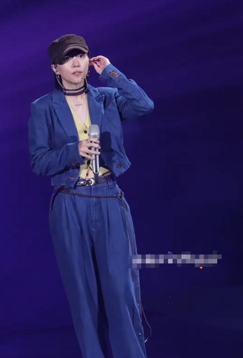 28岁的她身着深蓝色西装,站在舞台上深情演唱,全程沉浸在音乐的世界里,状态松弛又专业。