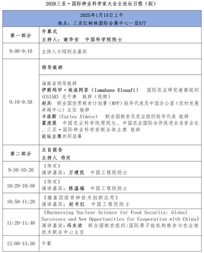 2026三亚·国际种业科学家大会活动安排: