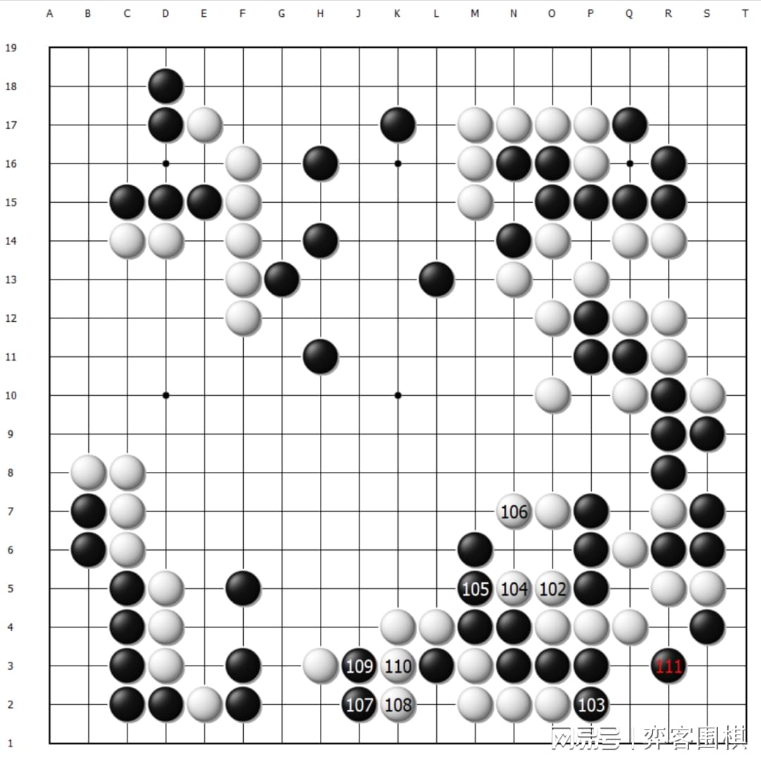 白74入侵角部,随后一串腾挪的手段堪称精彩,可惜局部先手做活的情况下,党毅飞忽略了被先手打二还一提穿。