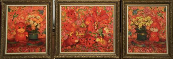 《中国吉祥组画》左:《牛年吉祥》80cmx65cm;中: