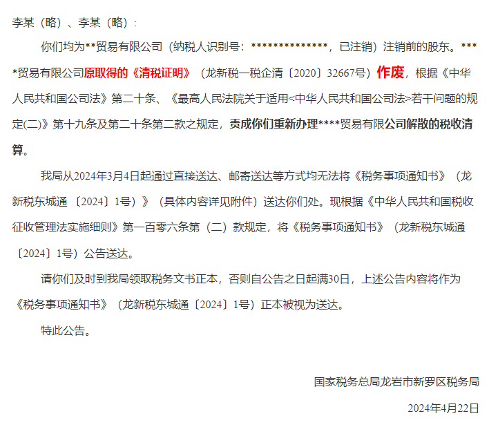 清税证明被作废+强制恢复税务登记!