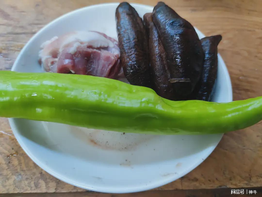 1.五花肉洗净后切成薄片,发好的海参剖开后去除里面的泥沙后切成条,尖椒去除根蒂后切成片。