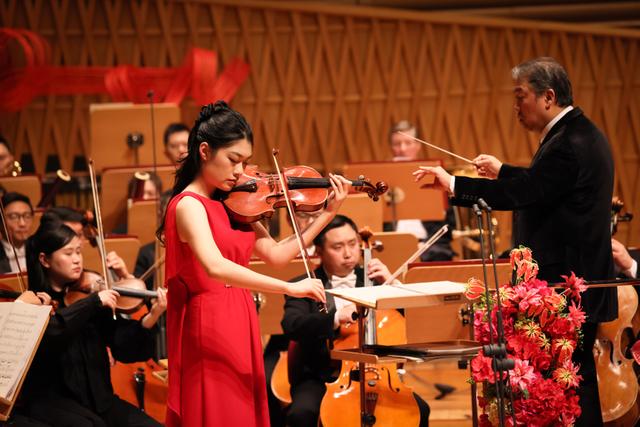 出生于2007年的小提琴家蔡珂宜在10岁、11岁时分别斩获安德烈亚·波斯塔奇尼国际小提琴比赛A组和梅纽因国际青少年小提琴比赛少年组的冠军,2025年7月发行的莫扎特协奏曲专辑登顶苹果古典音乐全球榜单,过硬的技巧、成熟的台风与稚嫩的外表形成了强烈的反差,被圈粉的乐迷们亲切地称呼她为“蔡教授”。这次是蔡珂宜第一次来到上海,作为第一次与余隆总监合作的“新人”,她起初格外紧张:“但余老师特别热情,也很supportive(充满鼓励的),慢慢就放松下来了”。身为摩羯座的完美主义者,她笑称压力多来自自己,“拉琴、功课都想做到最好”。这次上海新年音乐会是蔡珂宜与上海交响乐团的首度合作,曲目《卡门幻想曲》源自配乐大师韦克斯曼为电影《狂想曲》所作的音乐,以比才经典《卡门》为蓝本,后来应小提琴巨匠海菲茨请求,作曲家将此广受好评的片段扩展为了完整的音乐会作品。