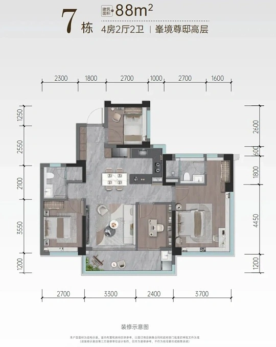 - 户型:88-142㎡三至四房高层,240㎡270° 环幕空中墅院,层高 3.2 米,户户带超大露台,得房率超 100%。
