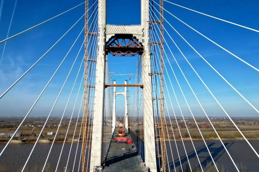 东营黄河公铁大桥主桥钢桁梁精准合龙