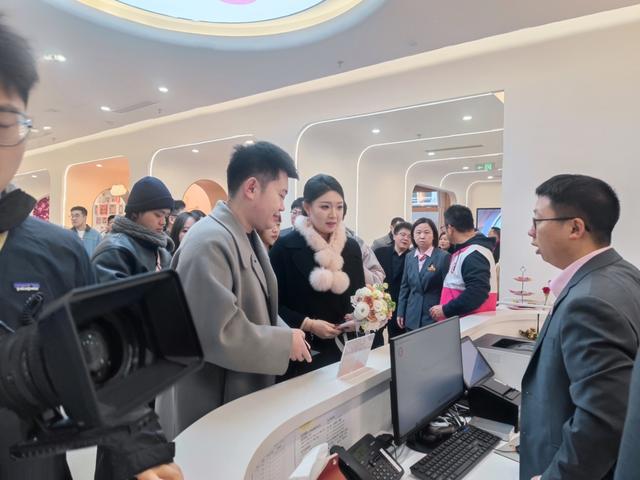 “这里的引导服务非常清晰,从材料预审到领证宣誓,整个流程一目了然。”提到领证体验,王艺萌连连称赞,“一楼等候区的布置也很用心,随手一拍都是大片。这些细节让领证不再只是走流程,更像是一场温馨浪漫的仪式。”