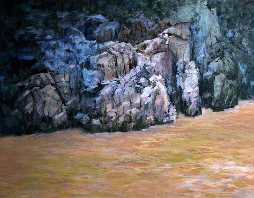 恩谊先生的这组油画,真实细腻的记录了长江三峡中最壮观的历史画面,先生借写实的手法表达了他对祖国山河的热爱与激情。我平时对艺术品的欣赏,最反感艺术创作像照相一样准确无误地将人物、自然景观、建筑遗址、不可移动文化遗产的外形,显现于画布上。而主张直观加想象,利用线条和色彩写出景观的独特魅力,画出其内在的精彩,着重“神似”。这就像一位熟悉的老朋友从远处走来,虽然看不清他的面容,甚至他穿着别人的衣服,但从他的姿态看来,便可断定他绝对不是别人。这种对人物及景观的认识,不可能凭一次直观的印象,而是经历过多次细心地观察,这种观察,艺术家仿佛在自己的大脑里安装了一台特殊的“雷达”仪器,通过雷达扫描,观察到的一切在他的大脑里形成了具有一定规律的流畅线条,只有熟练地掌握线条的巧匠,他的作品方能显现出繁简适宜,山石遒劲,景物蓬勃的绝佳效果。