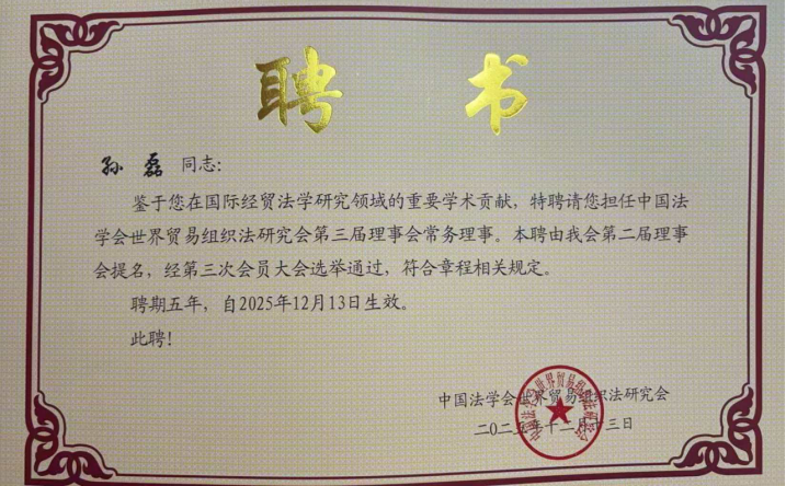 2025年12月13日至14日,“第十八届WTO法与中国论坛”暨中国法学会世界贸易组织法研究会第三次会员大会暨2025年学术年会在云南大学举行。中国法学会党组书记、常务副会长王洪祥,中国法学会党组成员、副会长王振江,世界贸易组织副总干事张向晨,世界贸易组织前副总干事易小准出席大会。中国常驻世界贸易组织代表团特命全权大使李咏箑视频致辞。大成律师事务所高级合伙人孙磊应邀出席,并当选中国法学会WTO法研究会第三届理事会常务理事。