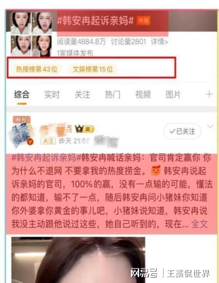 节目播出后,韩安冉快速绑定了“整容”、“家庭矛盾”等话题,通过开直播变现“流量”。