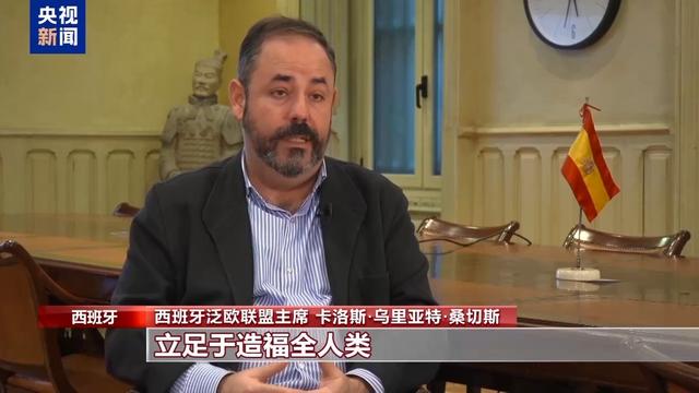 西班牙泛欧联盟主席 卡洛斯·乌里亚特·桑切斯:习主席提出的多项倡议和理念立足于造福全人类。上海合作组织及中非合作论坛等多边合作平台,充分体现了中国坚持合作共赢的理念,推动中国的发展成果惠及更多国家和人民。