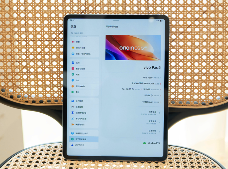 在续航这块“压舱石”上,vivoPad5表现出了惊人的毅力。10000mAh的大电池就像是一个小型发电站,即便是面对高清视频连续轰炸十小时,它依然能保持充沛的活力,长达62天的待机时长更是让它在偶尔被遗忘在角落时,拿起来依然电量在线。配合44W快充,虽然在数字上看似克制,但实测三十分钟回血百分之四十的效率,足以让用户告别电量焦虑。