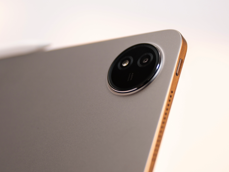 设计工艺上,vivoPad5展现了工业设计中的高级感。全一体化金属机身厚度仅为6.62mm,那种薄如蝉翼的观感配合590g的重量,让大尺寸平板也拥有了极佳的便携性。机身背部的磨砂处理质感细腻,既不沾染指纹,又提供了一种温润的握持力。摄像头模组的舷窗设计极具辨识度,仿佛是通往未来科技的窗口。对称分布的六扬声器开孔不仅是视觉上的美感,更是听觉盛宴的物理保障。