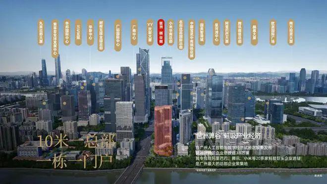 巨头为邻:琶洲西区打造华南地区总部企业聚集地,已引进阿里巴巴、腾讯、小米等总部企业超25家,计划到2035年超50家,以“10米一总部,一栋一门户”的规划,建成华南最大总部聚集地。