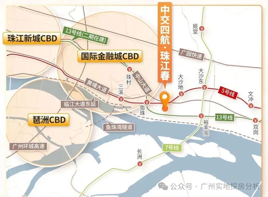 2、交通便利,距离地铁5号线鱼珠站约1.3公里,13号线二期(在建)通车后将进一步提升通勤效率。临江大道东延线预计2025年开通,可快速连接珠江新城、金融城和琶洲,自驾出行便捷。