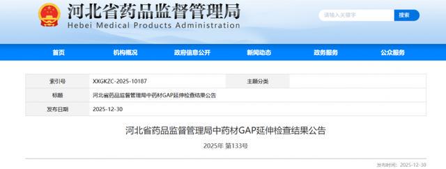 2025年12月30日,河北省药品监督管理局发布中药材GAP延伸检查结果公告,以岭药业酸枣仁种植基地凭借全流程规范化管理,顺利通过综合评定,成为全国首个通过该类检查的酸枣仁基地。