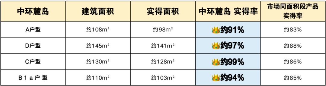 以145㎡的户型举例,实得面积能做到141㎡,实得率约97%。
