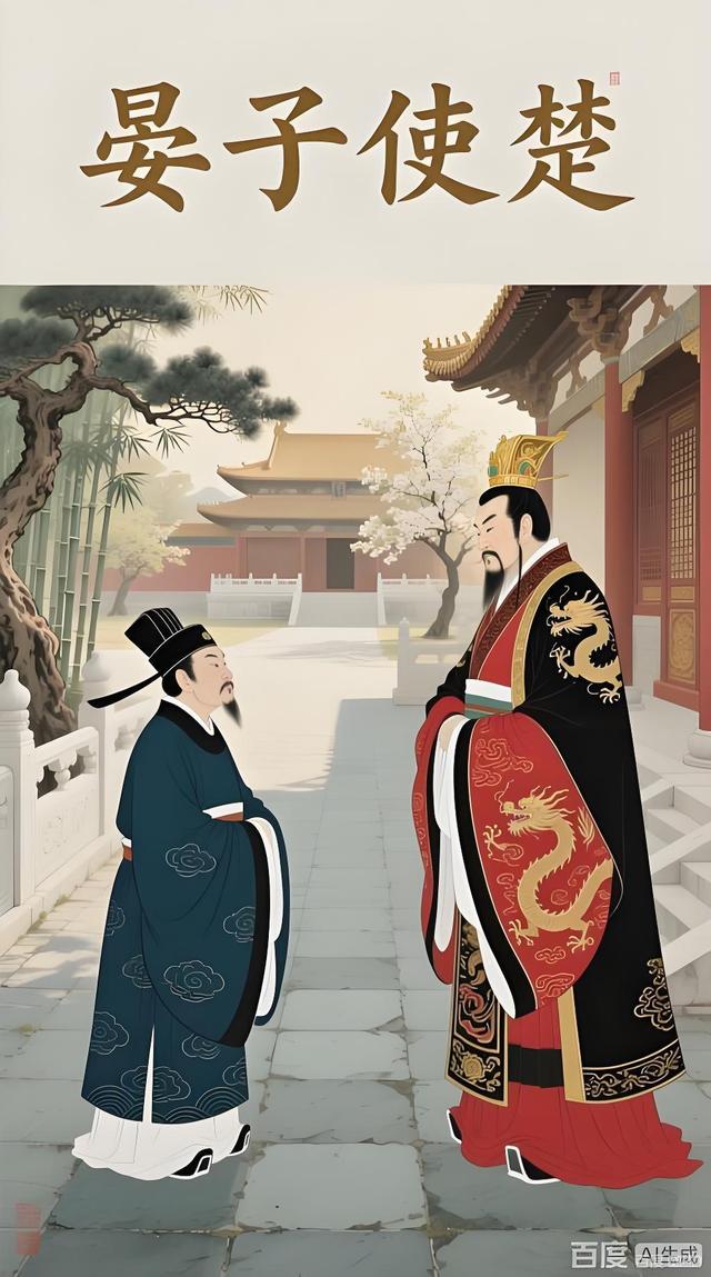 晏子将要出使楚国。楚王听到这个消息,对身边的大臣说:“晏婴是齐国的一个能言善辩的人,现在他正要来,我想要羞辱他,用什么办法呢?”侍臣回答说:“在他来的时候,大王请允许我们绑着一个人从大王面前走过。大王(就)问:‘(他)是做什么的?’(我则) 回答说:‘(他)是齐国人。’大王(接着再)问:‘(他)犯了什 么罪?’(我就)回答:‘(他)犯了偷窃罪。’"