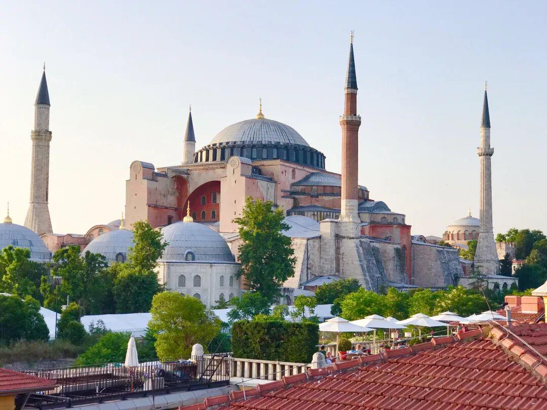 圣索菲亚清真寺(Hagia Sophia Mosque)由拜占庭君主下令修建,完工于公元573年,这座带有巨大圆形穹顶拜占庭式、拥有近1500年历史的恢弘建筑,是土耳其的标志与骄傲,也是世界建筑史上的典范。