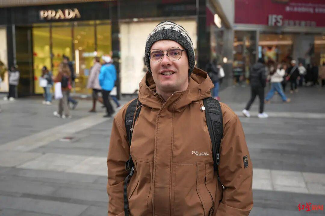 来自德国的Ian手持相机,正在春熙路记录街景。他曾于三年前在四川大学攻读硕士学位,对成都十分熟悉。“这不是我第一次来,我已经来过成都很多次了,”他说,“这座城市非常多样化,在春熙路能看到很多东西,有很多不同的餐馆和值得一看的地方。”Ian表示自己很喜欢吃辣,当被问起会带朋友去哪里时,他立即回答:“一定会去大熊猫基地,那是成都最著名的景点。”