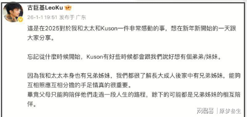 在2026年的第一天,官宣了自己二胎得子的好消息!