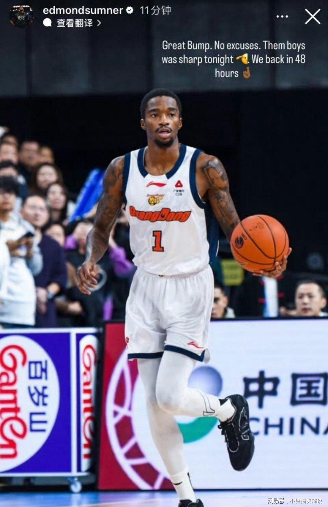 CBA元旦大战广东男篮客场输给北京首钢男篮31分,徐杰在比赛中遭遇伤病,这场比赛广东男篮输的惨烈至极。1月2日广东男篮外援萨姆纳更新社媒:输的挺惨但不找任何借口,48小时后咱再打回来。