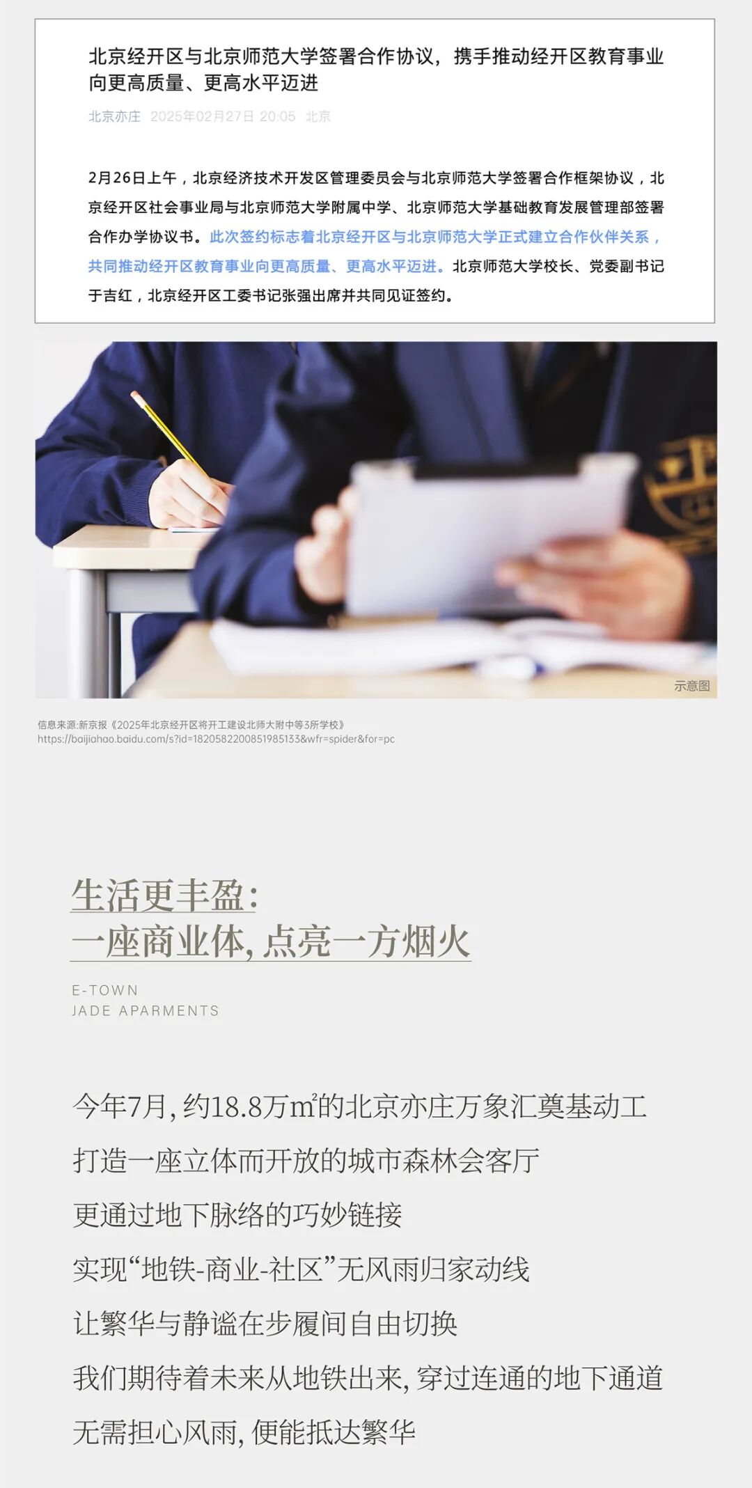 今年7月,约18.8万m的北京亦庄万象汇奠基动工打造一座立体而开放的城市森林会客厅更通过地下脉络的巧妙链接实现“地铁-商业-社区”无风雨归家动线让繁华与静谧在步履间自由切换我们期待着未来从地铁出来,穿过连通的地下通道无需担心风雨,便能抵达"