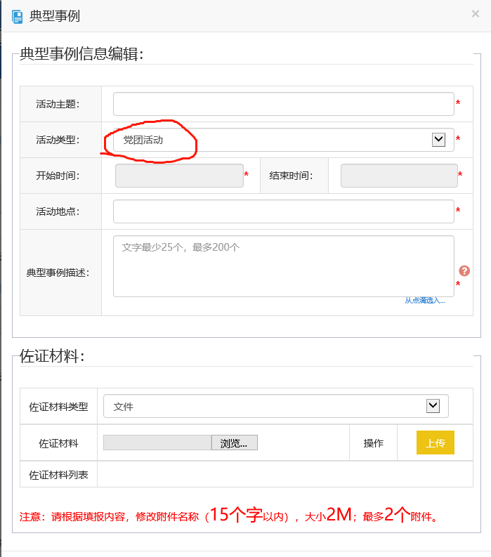 党团活动可以填写学校举行的各种爱国主义教育活动,比如升旗仪式、歌唱比赛、朗诵比赛等等,如下图所示。