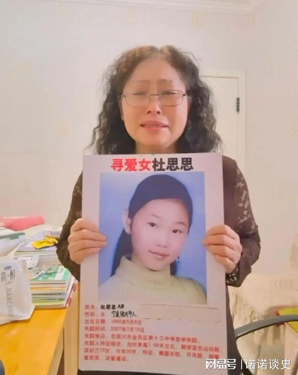 杜金龙的妻子手里紧紧攥着丈夫生前制作的寻人牌,牌子上是杜思思15岁时的照片,笑容特别灿烂。