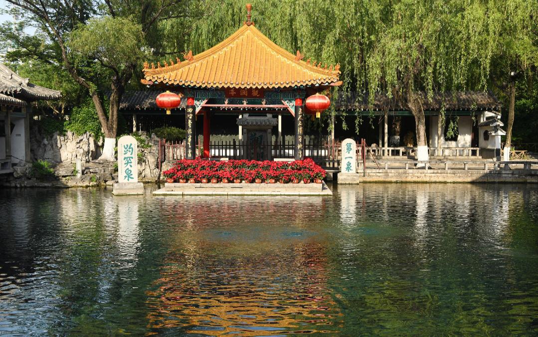 在山东济南章丘明水古城,景区精心打造的元旦主题系列活动精彩上线。从空中俯瞰泉水翻涌,水中鱼群畅游。