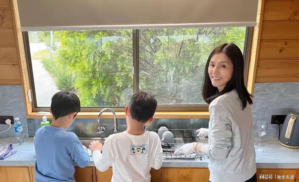 许久不见的港星杨采妮元旦与老公儿子在新加坡豪宅户外烧烤,老公温柔体贴忙前忙后,双胞胎儿子帮忙打下手,一家四口很是温馨。