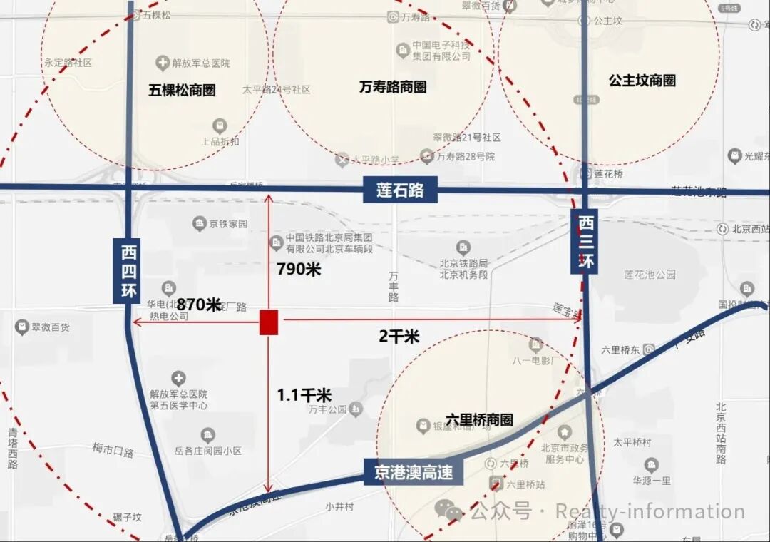 同时项目是在西三环附近的主城区,片区内上一个项目还是2016年的紫辰苑,最近10年西三环是没有土地供应的,项目在土地价值上有一定的稀缺性;2KM范围内拥有五棵松商圈、万寿路商圈、公主坟商圈、六里桥商圈四大商圈;距离东西城、丰台科技园、丽泽商务区、金融街都在10公里范围内,开车便捷接驳各大资源圈;可以说岳各庄项目在整个西三环是独一份的存在。